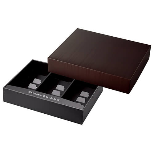 サイズが身335×260×70mmのお菓子向けギフトパッケージ。洋菓子の包装にちょうど良い大きさとなっています。より高級感を求める方にいかがでしょうか。