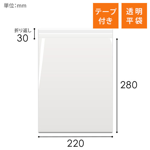 「OPP-S220-280T30」は、220mm×280mmのテープ付きOPP袋で、