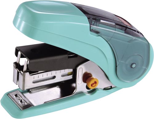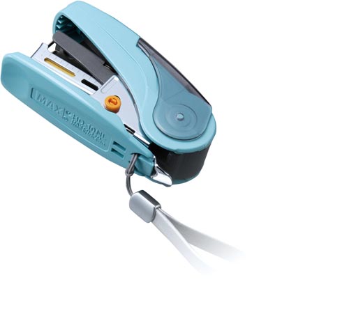軽い力でサクリととじる。一台に針150本、コンパクトなユニバーサルデザインのホッチキス。