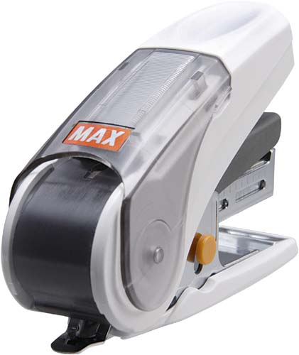 軽い力でサクリととじる。一台に針150本、コンパクトなユニバーサルデザインのホッチキス。