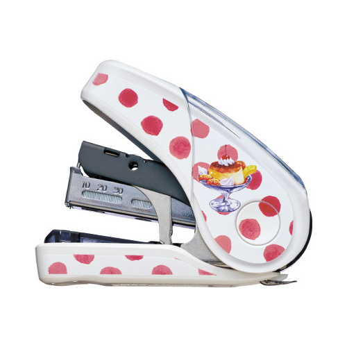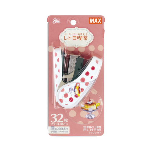 マックス創立80周年記念特別企画「ホッチキスデザイン総選挙第1位」サクリフラットレトロ喫茶デザイン。デザイン性と機能性を兼ね備えたホッチキスです。