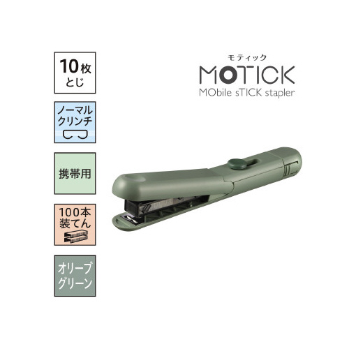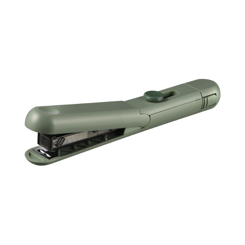 ペンケースに綺麗に収納しやすいスティック型のホッチキス。ボタン操作で、使う・たたむを簡単に切り替え!コンパクトサイズなのに針100本装てん可能で、使いやすい!