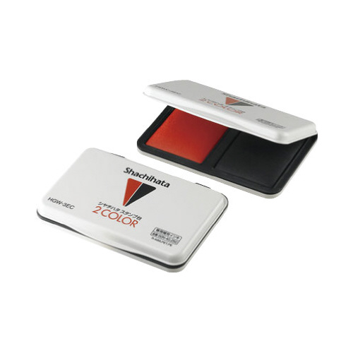 1台で2色の便利で経済的なスタンプ台。素早い乾き、優れた耐水性・耐光性で長期保存の書類に最適。1台のスタンプ台に、赤と黒の2色のインキをセットしました。