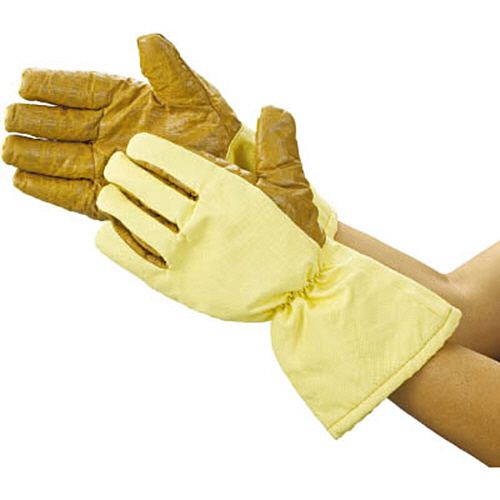 ●高強力素材PBO繊維「ザイロン[[(R)]]」を使用し、裏生地との中間層にアラミド混フエルト特殊断熱シートを入れた4層構造になった高耐熱手袋です。