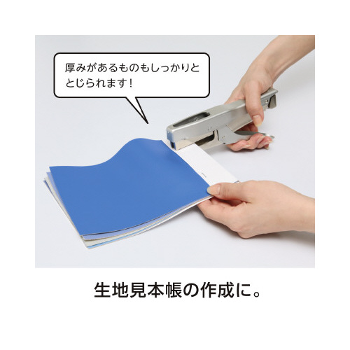 針足の長い消耗品にも対応しているため、布や段ボールなど厚みのあるものもしっかりととじられます。