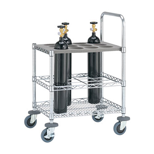 医療用ボンベの安全な保管と搬送を1台で行えます。