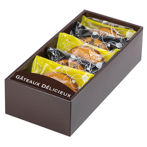 サイズが111×260×70mmのお菓子向けギフトパッケージ。焼菓子などの詰め合せにちょうど良い大きさとなっています。洋菓子類のパッケージ、ギフト包装にいかがでしょうか。