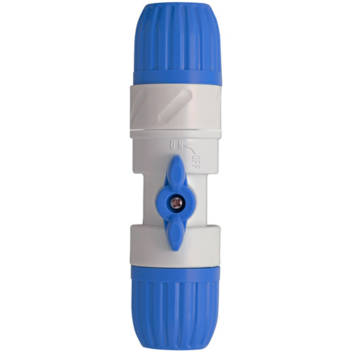●ホースの途中で通水・止水ができるコック付き、本体が360度回転するホースねじれ防止機能も付いています。