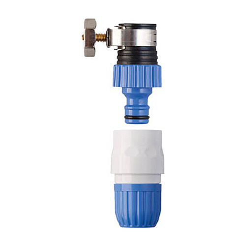 蛇口にホースを接続します。バンド締めタイプなので蛇口を傷めることなく取り付けられます。