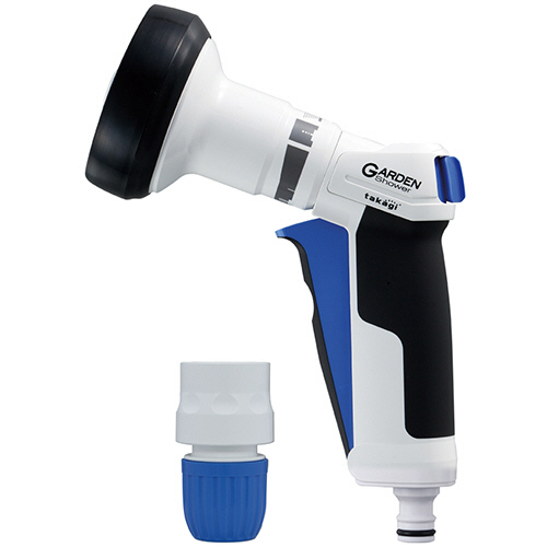 ●水形はミスト・スポットシャワー・フロー・ジョロ・スポットジョロ・大流量シャワーの6種類に切り替えができるガーデニングに好適なアイテムです。