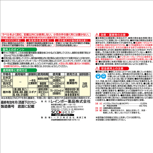 ●スギナや一年生広葉雑草を枯らす。
