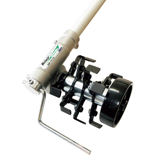 市販のエンジン刈払機に取付け可能で、立ち姿でラクラク&スピーディーに草削りができます。
