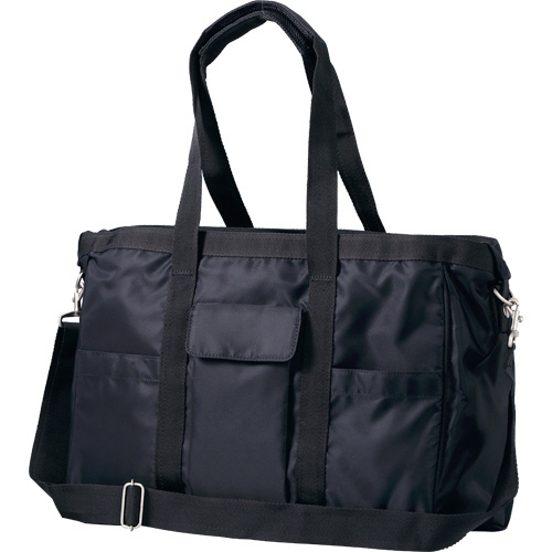 ●中の荷物がぬれない撥水加工素材の介護バッグ。カラーはブラックです。