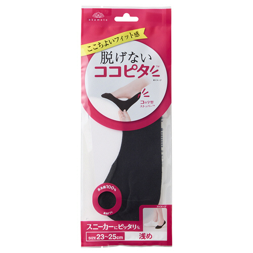 ●フットカバーの課題であった「脱げによる不快感」を、足の動きと生地の伸縮性を研究し、独自開発した「コの字型ストッパー」で対策した靴下です。