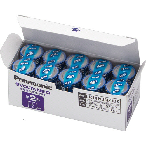 ●2本シュリンクのアルカリ単2形乾電池。5パック入りの5箱。