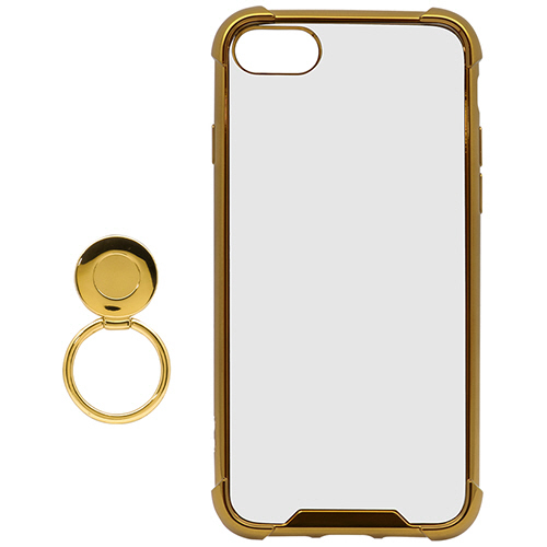 ●リングでスタンド機能。iPhone SE(第3/第2世代)/8/7対応耐衝撃ハイブリッドケース。カラーはゴールドです。