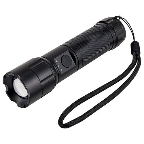 ●急な電池切れを防ぐ、電池残量インジケーター搭載のLEDアルミライト。明るさは450lmです。