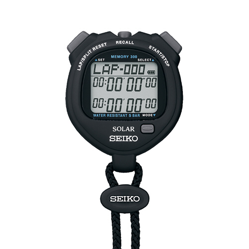 電池交換であわてることのないソーラー充電式ストップウォッチです。