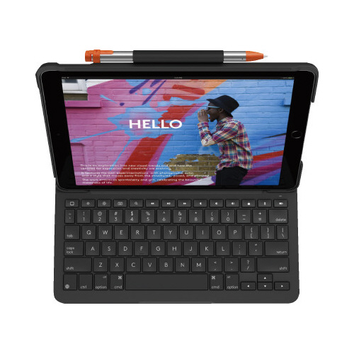 フルサイズキーボードを搭載したスリムなiPad第7、8、9世代用キーボードケース。完全なiPadOSショートカットキー列を備え、ケースにはApplePencil用ホルダーがございます