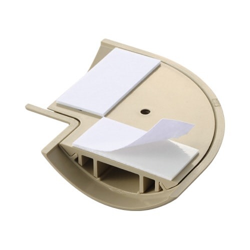 基台付きで、カバーはワゴンモールの蓋の上からかぶせるだけ。床配線の際のケーブルを保護し、すっきりと収納できる床用モール(LD-GA1307MA)用のジョイントパーツ(曲ガリ)。