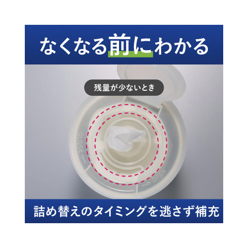 シートの残量が見える半透明キャップ採用で、詰め替え目安がわかるアルコールタイプの除菌ウェットティッシュ。身の回りのお掃除に。防腐剤(パラベン)不使用。