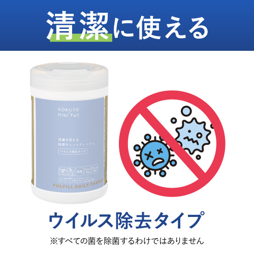 シートの残量が見える半透明キャップ採用で、詰め替え目安がわかるウィルス除去成分配合の除菌ウェットティッシュ。施設のドアノブや手すりの清掃に。