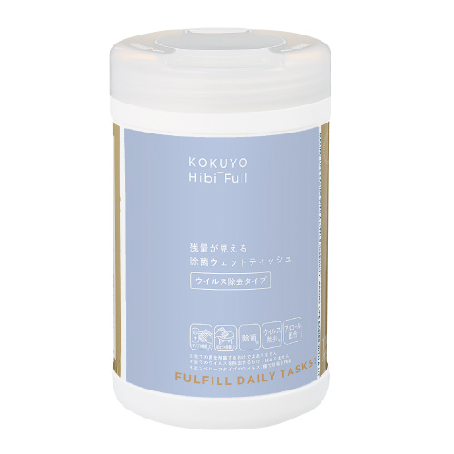 シートの残量が見える半透明キャップ採用で、詰め替え目安がわかるウィルス除去成分配合の除菌ウェットティッシュ。施設のドアノブや手すりの清掃に。