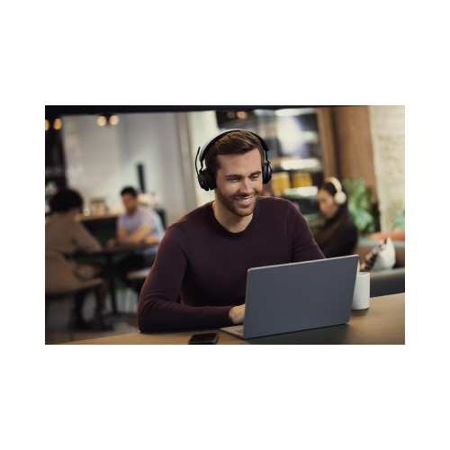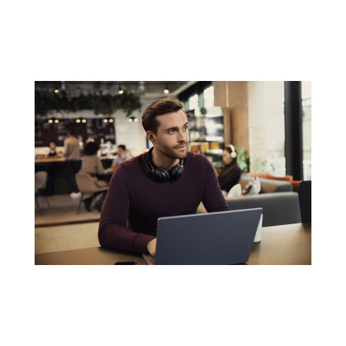 無線ヘッドセット USB-A 両耳 主要UC認定【新ミッドレンジモデル】▼充電スタンド付 ▼USB-A Bluetoothアダプター付 ▼オンイヤー型 ▼遮音性の高い設計で雑音をブロック