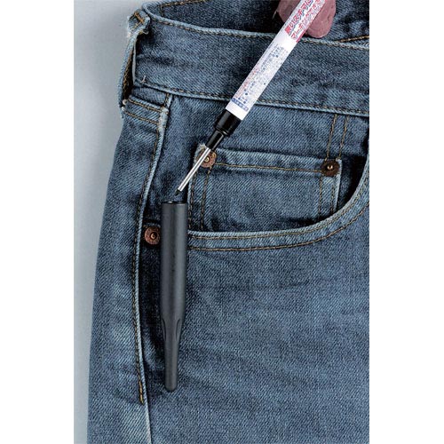 狭くて深いスキマへのマーキングや部品の穴を通してのマーキングができます。ポケットに差したまま作業ができるストラップ用の穴付きキャップや定規付きのボディーなど作業現場を配慮した工夫を随所に施しました。