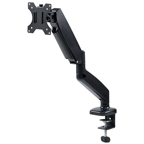 モニターの位置を自由に調整でき、13~32型のモニターに対応するガススプリング式のシングルモニターアーム。