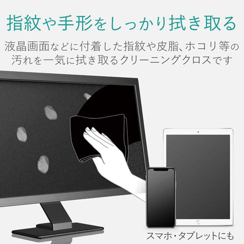 汚れが見えて効果が分かるブラックタイプ。超極細繊維で汚れやホコリをきれいに拭き取り、ホコリの再付着を防止する静電気抑制タイプのクリーニングクロス。