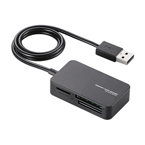 主要メディアに対応しながらコンパクトサイズを実現。持ち運びに便利なケーブル一体タイプの小型メモリリーダライタ。