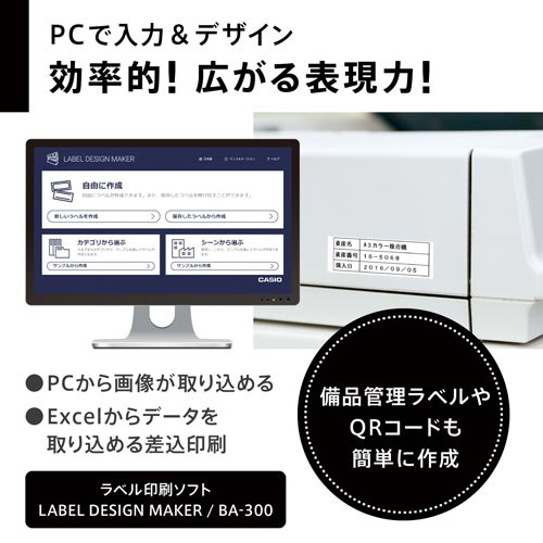 ●その他機能/ATOK搭載、拡大印刷機能、デザインロゴ120種、バーコード・QRコード印刷、縦横同時印刷、連続印刷、連番印刷