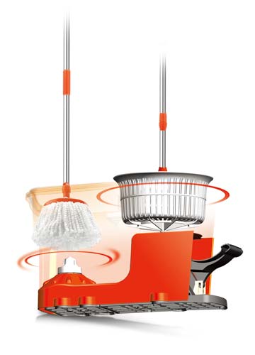 ペダルを踏むだけで脱水できるので、手を汚さず衛生的です。便利なモップの洗浄機能付きです。マイクロファイバーモップで、水拭きでから拭きでも、しっかり汚れをキャッチします。遠心力で脱水するので、しっかり脱水できます。