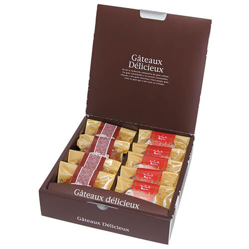 サイズが211×204×60mmのお菓子向けギフトパッケージ。焼菓子10個にちょうど良い大きさとなっています。洋菓子類のパッケージ、ギフト包装にいかがでしょうか。