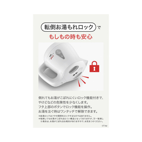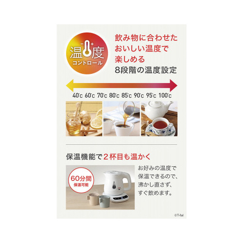 ティファール初、8段階の温度コントロールケトルに、倒れてもお湯がこぼれにくい「転倒お湯もれロック機能」が付いた電気ケトルが新登場!よりあんしんにホットドリンクをおいしい温度で楽しめるように。