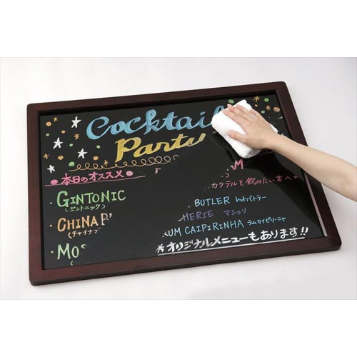 ブラックボード、ホワイトボード、ガラスに筆記できます。ウェットティッシュでカンタンに消せます。