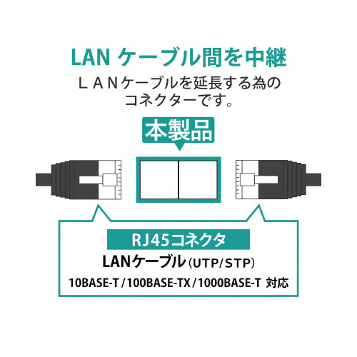 10BASE-T/100BASE-TX/1000BASE-T仕様のLANケーブル延長コネクタです。