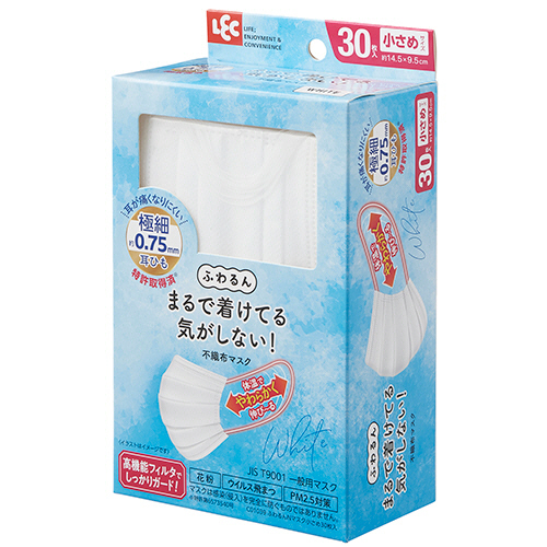 ●材質/本体・フィルタ部:ポリプロピレン、ノーズフィッター部:ポリエチレン、耳ひも部:熱可塑性エラストマー、シール部:ポリプロピレン