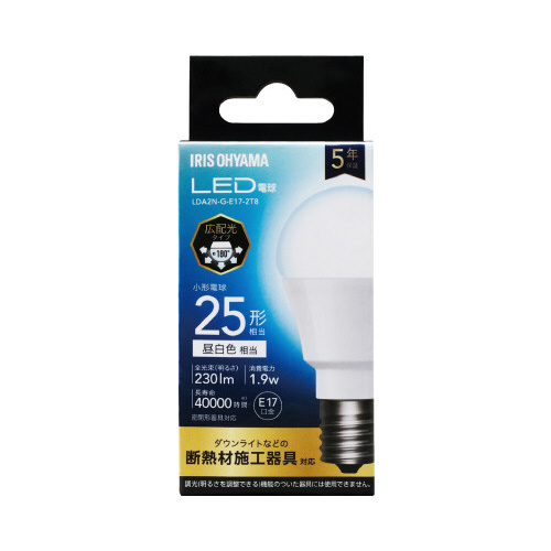 白熱電球のように広範囲に明るい広配光タイプなので、リビング・ダイニング・キッチン・脱衣所などの照明に最適なLED電球です。