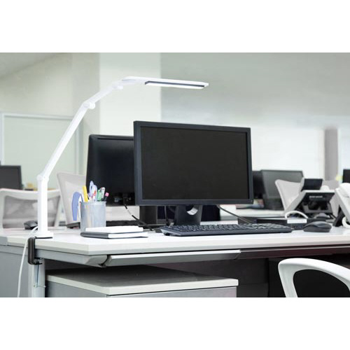 「まぶしさガード」採用で、手元は明るく、光源はまぶしくない、目にやさしいLEDデスクライトです。明るさは無段階調節で調光ができ、オフィスなどで適切な明るさをご提供します。