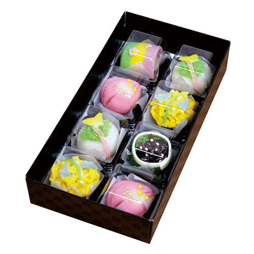 和菓子用のルミアカップを8個包装するのにちょうど良い大きさとなっています。