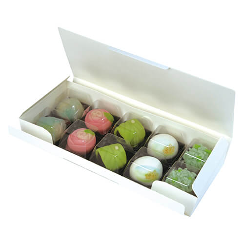 サイズが124×302×45mmのお菓子向けギフトパッケージ。ルミアカップ10個分の包装にちょうど良い大きさとなっています。和菓子類のパッケージ、ギフト包装にいかがでしょうか。