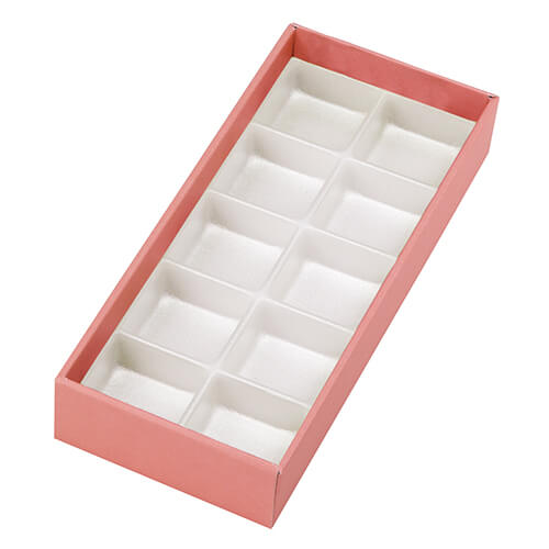 サイズが身285×120×45(フタ292×126×45)mmのお菓子向けギフトパッケージ。和菓子10個にちょうど良い大きさとなっています。和菓子用のギフト箱にいかがでしょうか。