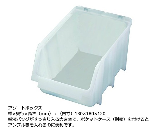●ボックスは輸液バッグがすっきり入る大きさで、ポケットケース(別売)を付けるとアンプル等を入れるのに便利です。