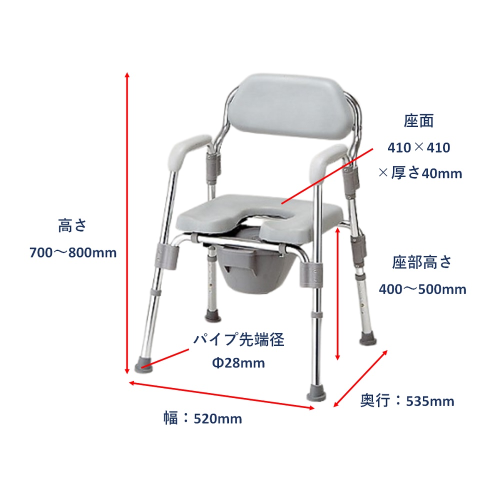トイレ椅子(折りたたみ式) 520×535×700~800mm