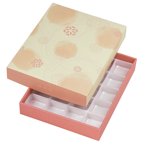 サイズが身285×228×45(フタ292×234×45)mmのお菓子向けギフトパッケージ。和菓子20個にちょうど良い大きさとなっています。和菓子用のギフト箱にいかがでしょうか。