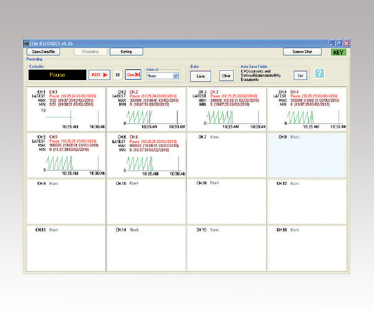 ●任意の設定を複数チャンネルに一定間隔で送信し、受信した計測データと時刻を記録します。