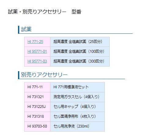 ●測定項目:超高濃度全塩素