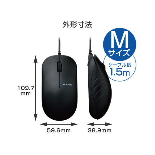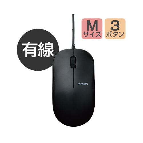 1000万回高耐久性能スイッチ採用、保証期間3年で安心して使用できる。EURoHS指令にも準拠し、オフィスでの使用に最適な有線3ボタンBlueLEDマウス。